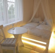 Trzy niezależne małe pokoje (studia), każde z własną łazienką, w suterenie kamienicy, dla dwóch osób dorosłych bez dzieci, w każdym pokoju - podwójne łóżko, tv z nc+, wi-fi, aneks kuchenny z lodówką...