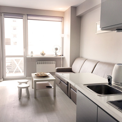 Mimo niewielkiej powierzchni (20 m2) apartament jest bardzo funkcjonalny i zapewnia komfortowy wypoczynek nawet 4 osobom. Do dyspozycji gości jest salon z bogato wyposażonym aneksem kuchennym, łazienką oraz balkon z widokiem na morze. W salonie znajdują się dwie wygodne sofy 2 osobowe( 150 i 120 cm)