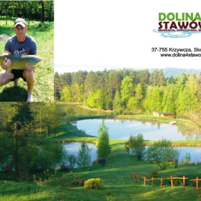 Dolina Czterech Stawów położona jest w niezwykłym zakątku wioski Skopów w gminie Krzywcza w powiecie przemyskim. Na ponad 2 hektarowym, odgrodzonym obszarze, o unikatowym tarasowym ukształtowaniu, znajdują się cztery stawy rybne z wodą czerpaną z bijącego źródła. Urokliwy teren otoczony jest z trzech stron lasem, dookoła podziwiać można wzniesienia Pogórza Przemyskiego i Dynowskiego. Zbudowaliśmy, a właściwie wkomponowaliśmy infrastrukturę turystyczną tak, aby nie zakłócała malowniczego położenia, wszechobecnej ciszy, zapachu ziół i szumu wodnych kaskad.
