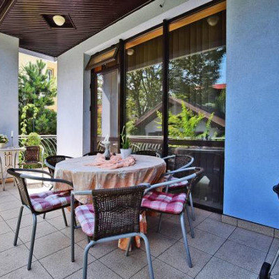 Niepodważalnym walorem domu jest duża i klimatyczna przestrzeń socjalna – w pełni wyposażona kuchnia, jadalnia oraz salon z kominkiem i tarasem połączony przejściem do kameralnego ogródka. Pokoje pomieszczą wiele osób lub tylko pary.