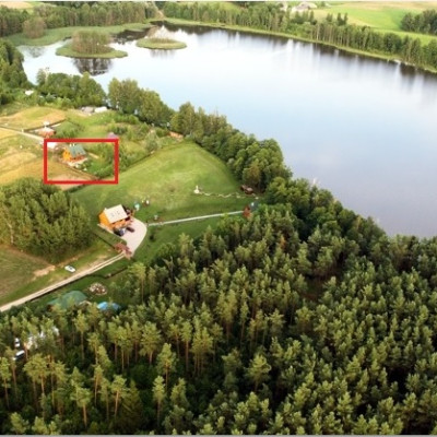 Do dyspozycji oddajemy działkę z grillem, ogrodzoną i zadrzewioną z parterowym domem drewnianym z poddaszem. Dostęp do własnej linii brzegowej jeziora z pomostem.