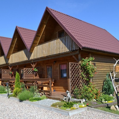 Oferujemy Państwu 5 drewnianych letniskowych domków o wysokim standardzie. Każdy domek jest dwu poziomowy z aneksem kuchennym, jadalnią, łazienką i salonem na parterze oraz dwiema sypialniami na pierwszym piętrze. Z jednej sypialni na piętrze znajduje się wyjście na balkon. Przy każdym domku jest taras. W domkach może zatrzymać się do 8 wczasowiczów.