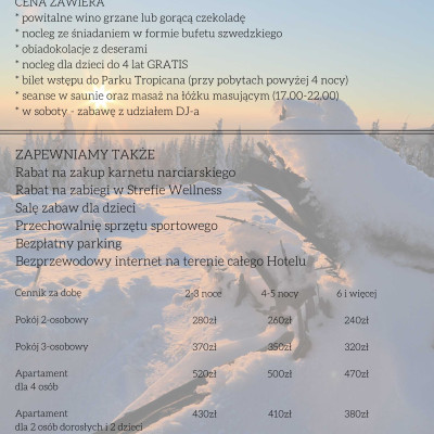 Serdecznie zapraszamy do Hotelu pod Gołębiem! Białe szaleństwo a może spokojny wypoczynek w górach? Niezależnie od tego, jak zamierzasz spędzić wolny czas, zapraszamy do skorzystania z wyjątkowo atrakcyjnych pakietów feryjnych!