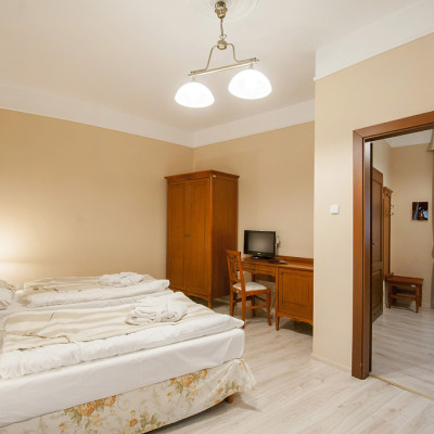 Hotel udostępnia 36 miejsc noclegowych w wysokiej klasy pokojach jedno-, dwu-, i trzyosobowych. Posiada dostęp do Internetu (WiFi), skrytek depozytowych oraz świadczy usługę room service w godzinach pracy restauracji. Pokoje wyposażone są w telewizory oraz minibar. Wspaniała lokalizacja w centrum Uzdrowiska, obiady serwowane w restauracji, śniadania i kolacje w formie szwedzkiego bufetu, a przede wszystkim dostęp do basenu termalnego to niewątpliwe atuty obiektu.