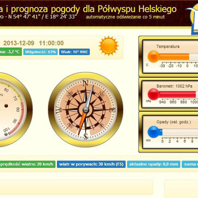 Serwis pogodowy w portalu Polwysep.pl. Prezentowane na stronie prognozy zawierają informacje o temperaturze, ciśnieniu, prognozowanych opadach oraz wietrze dla Półwyspu Helskiego i okolic. Ogromnym atutem witryny jest czytelny i prosty layout oraz aktualizacja, co 5 minut. - www.pogoda.polwysep.pl
